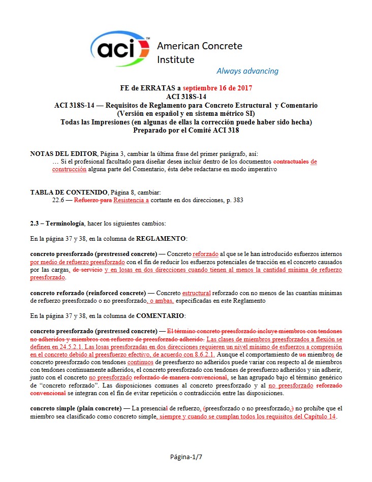FE de ERRATAS ACI 318S-14 a septiembre 16 de 2017